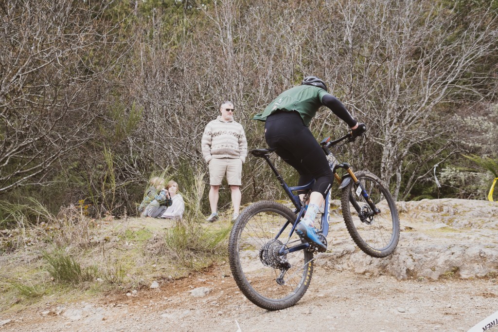 The beginning of the race was a ten-minute climb and the start of that was quite steep. I decided to not go as hard as possible on this first part to not explode immediately. I rode steadily to the top of the first climb and it was a bit tough watching some of the guys I normally race with get ahead never to be seen again. I was fatigued from my current training block and lack the real explosive power that gets me over short steep climbs. With my climbing power slightly lower I decided to focus on being smooth and going fast through the technical parts and the downhill sections.