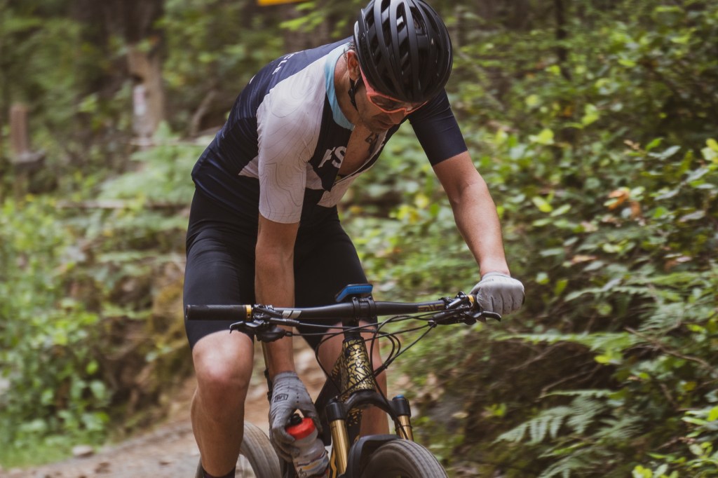 The Nanaimo course was another limited climbing course; however, it felt like climbing for the first half of each lap, and the elevation chart on training peaks agrees with that feeling. The uphill just wasn’t very steep, which means a lot of pedaling. I am happy to pedal, though, as it seems the more time you can spend putting in pedal strokes per lap, the better the course suits me. The course had only a few open passing areas; otherwise, it was a lot of singletrack. With that in mind, I decided to take a different approach than the last race and just go as hard as I could up the road start section, and that would hopefully land me in the top three going into the first singletrack section. The day before the race, Lindsay and I were talking about strategy, and I planned to go really hard at the start and get to the singletrack first. I’m not sure exactly about the conversation, but she asked how I thought I would do on this course, and I said that I’m probably going to win the race. She said that I was trying the positive self-talk approach. I knew, however, that my training was going well and, with our “A” race only a few weeks away and currently tapering, I had a real good chance of having a really good ride.