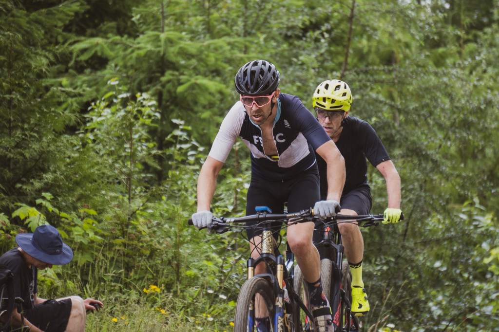 We lined up for the start and the first phase went well. I lost a bit on the latter part, and I watched Scotty Mitchell zoom by to enter the single track right ahead of me. Scott hadn’t raced XC yet this year, and I think he has been focused more on fishing than bikes lately, so it was good to see he still felt competitive. It didn’t take long until that started to catch up to him, and with me on his wheel recovered from the first effort, I asked for a pass, and he promptly let me by. At the end of the first lap, I was in 5th, with Jamie Levett, another guy with me as we entered the fire road. At the end of the fire road, it was just Jamie and I.